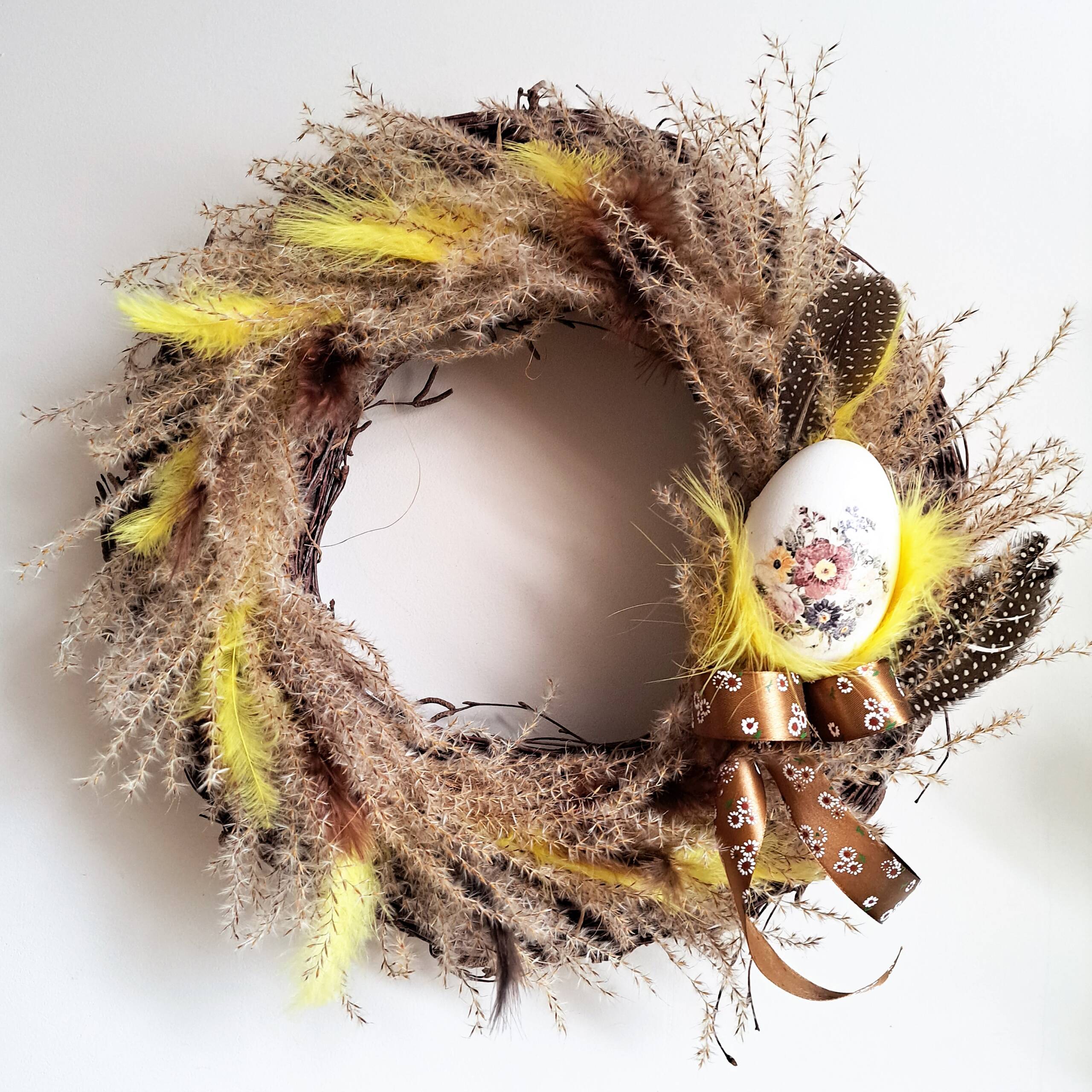 Puchate trawy z gęsim jajem – Wianek wielkanocny, wiosenny
